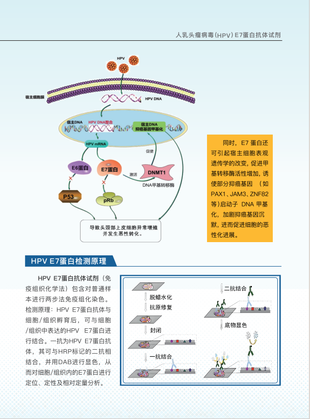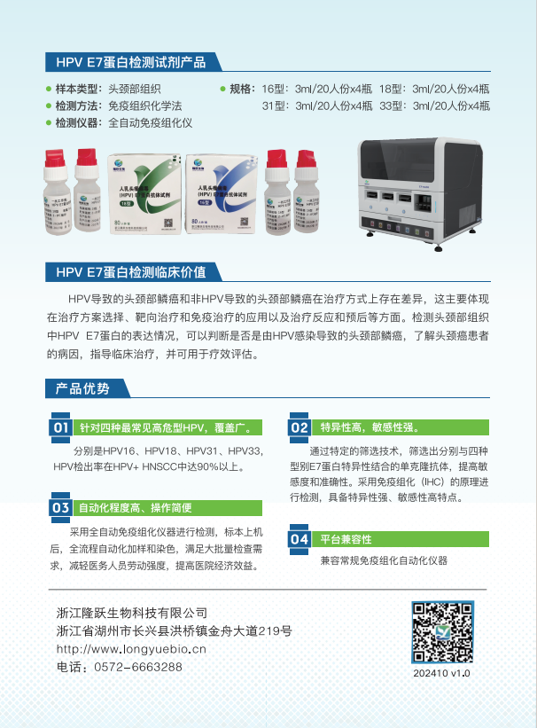 There are differences in treatment methods between head and neck squamous cell carcinoma caused by HPV and non HPV, mainly reflected in the selection of treatment plans, the application of targeted therapy and immunotherapy, as well as treatment response and prognosis. Detecting the expression of HPV E7 protein in head and neck tissues can determine whether head and neck squamous cell carcinoma is caused by HPV infection, understand the etiology of head and neck cancer patients, guide clinical treatment, and be used for efficacy evaluation.
